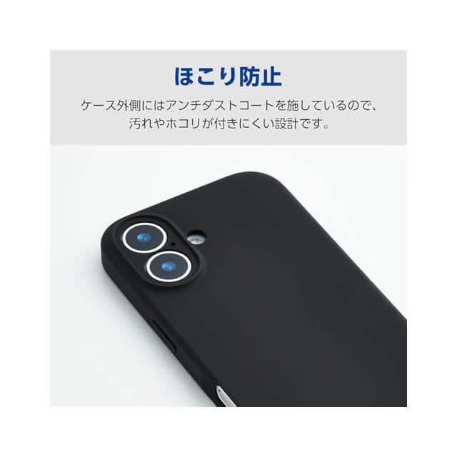 ケース外側にはアンチダストコートを施しているので、汚れやホコリが付きにくい設計です。