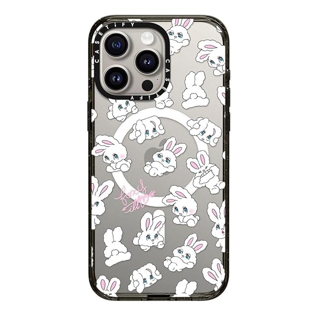 CASETiFY MagSafe 対応インパクト iPhone 15 Pro Max ケース [MIL規格準拠 (4x MIL-STD-810G) / 2.5mからの落下試験をクリア / MagSafe に対応] - 動物 Print - Bunnies - クリア ブラック | LIS MART