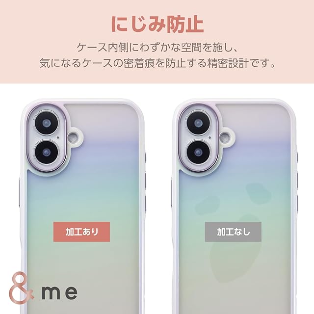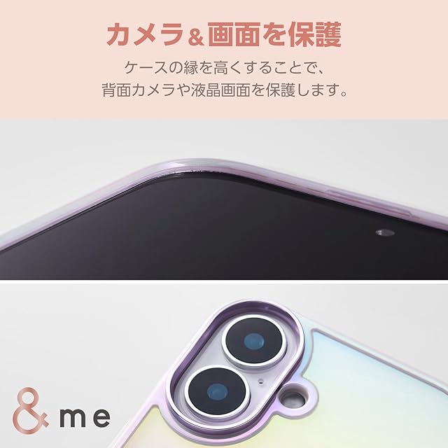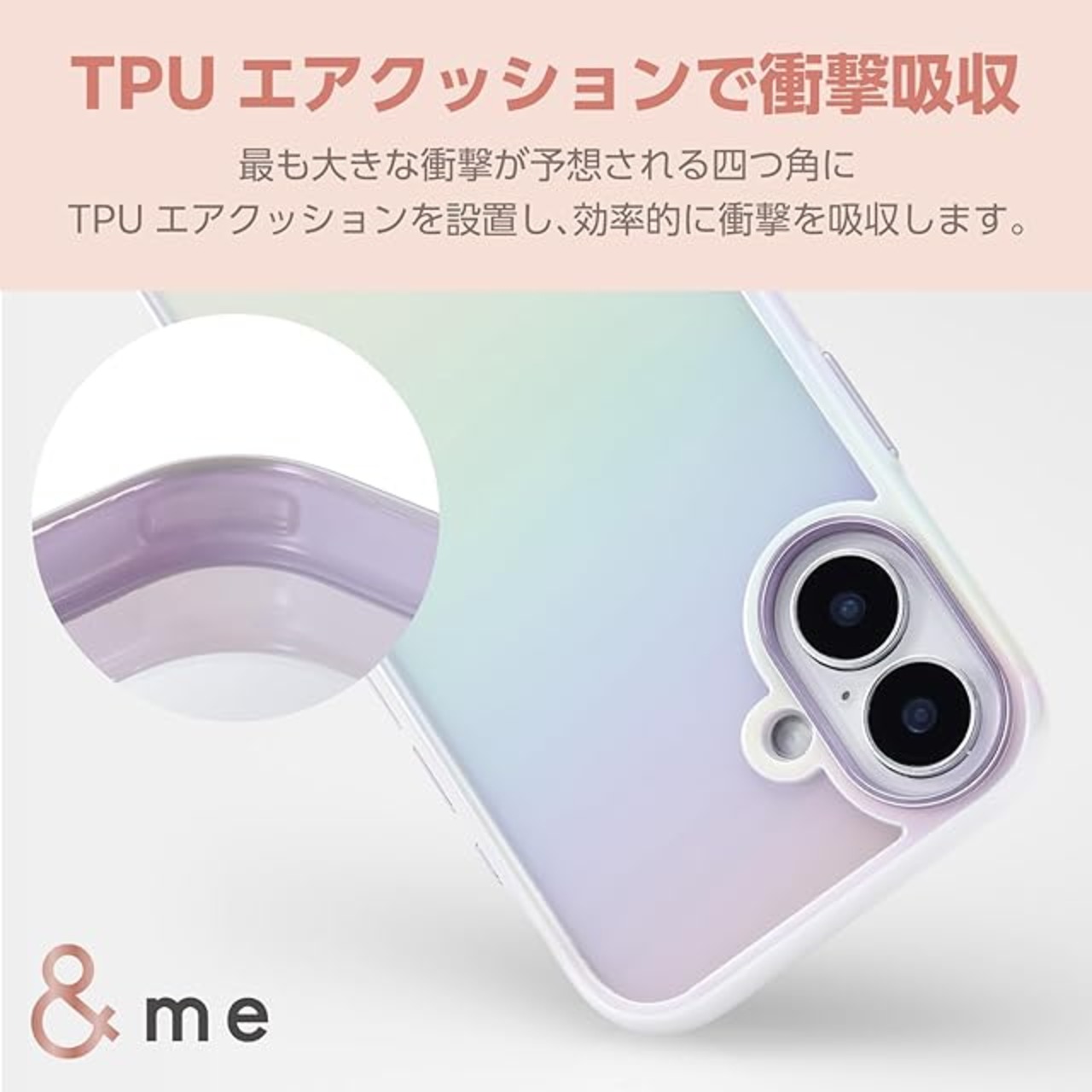 オーロラのような輝きが美しい、ポリカーボネートとTPU(熱可塑性ポリウレタン)の2素材を組み合わせた、&meシリーズのハイブリッドケースです。