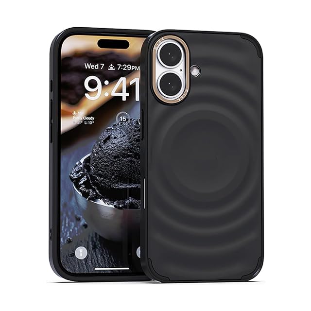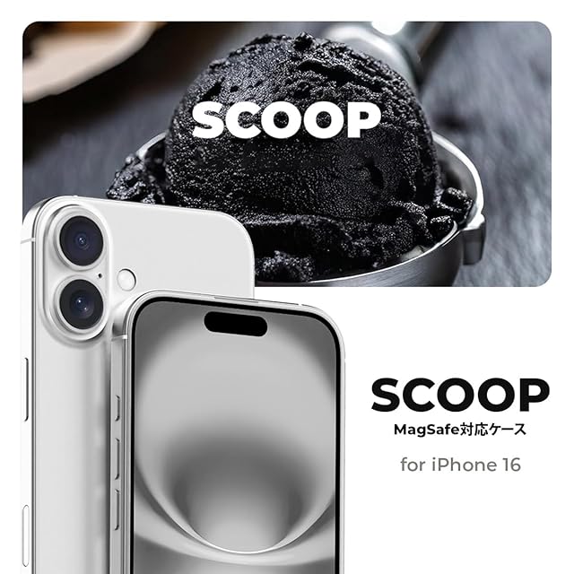 miak iPhone 16 用 SCOOP MagSafe対応ケース [ アイスクリームモチーフの立体デザイン メタルカメラフレーム レンズ保護 背面ポリカーボネート TPU 衝撃吸収 ハイブリッド構造 防塵設計 ストラップホール付き ] ブラックソルベ MA27612i16【国内正規品】 | LIS MART