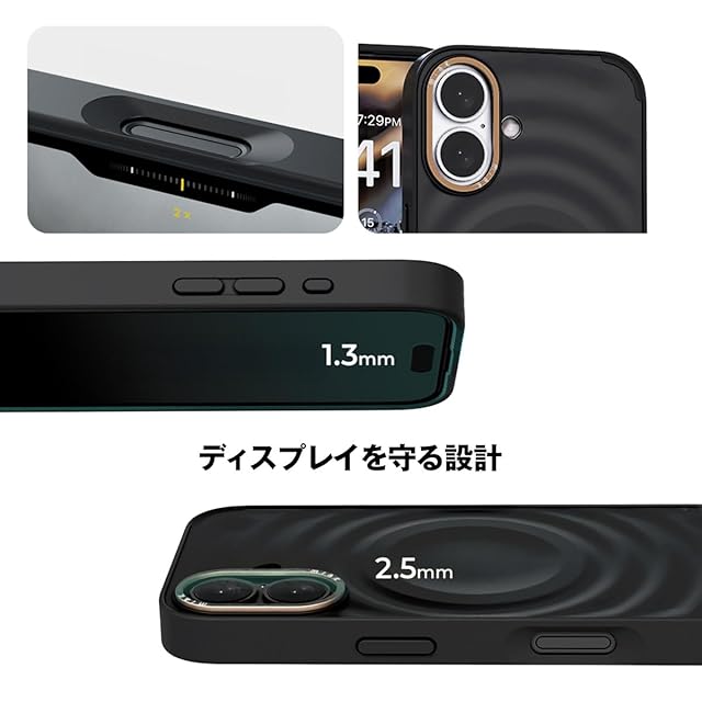 ポリカーボネート背面とTPUベゼルのハイブリッド素材で、高耐久、着脱もスムーズ。