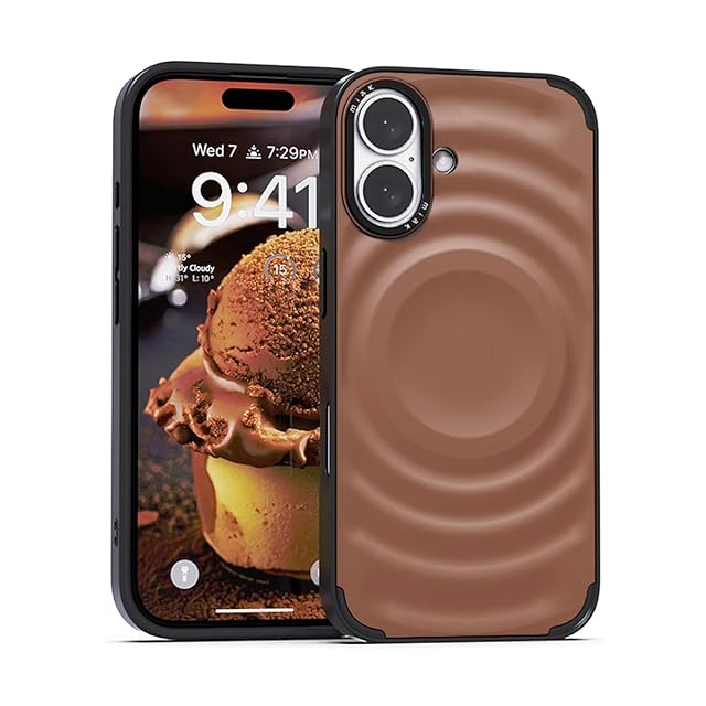 商品名:miak iPhone 16 用 SCOOP MagSafe対応ケース [ アイスクリームモチーフの立体デザイン メタルカメラフレーム レンズ保護 背面ポリカーボネート TPU 衝撃吸収 ハイブリッド構造 防塵設計 ストラップホール付き ] モカムース MA27628i16【国内正規品】