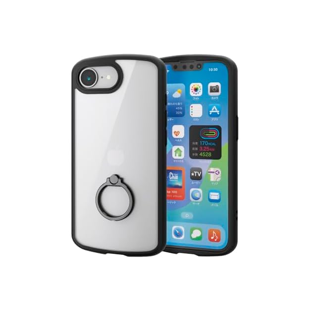エレコム iPhone 16e ケース 背面クリア 透明 耐衝撃 衝撃吸収 軽量 薄型 スタンド機能 レンズ保護 ストラップホール付き ショルダーストラップシート付 スマホリング付き ブラック PM-A25STSLFCRBK | LIS MART