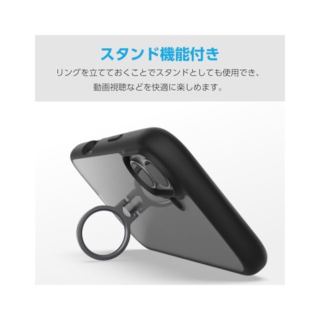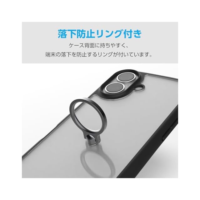 商品名:エレコム iPhone 16e ケース 背面クリア 透明 耐衝撃 衝撃吸収 軽量 薄型 スタンド機能 レンズ保護 ストラップホール付き ショルダーストラップシート付 スマホリング付き ブラック PM-A25STSLFCRBK