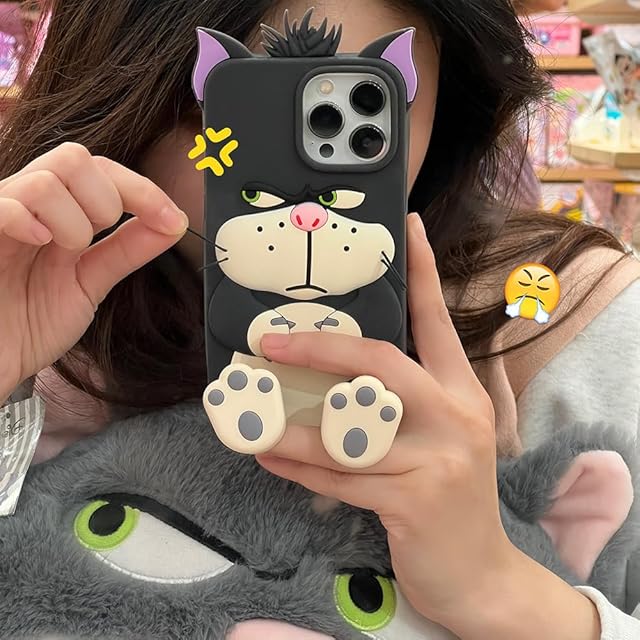 mayababy iphone ケース 耐衝撃 可愛い 3D立体 ネコ匹 スタンド 動物 萌え萌え ぬいぐるみ シリコンのTPUソフトケース スマホケース 携帯ケース キャラクター アニマル 擦り傷防止 デザイン 背面ケース (ブラック, iphone 14) | LIS MART