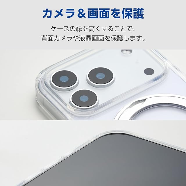 エレコム iPhone 17 Pro ケース カバー クリア 耐衝撃 衝撃吸収 マグネット MAGKEEP ハイブリッド TPU 回転式スタンド ワイヤレス充電対応 4つ角エアークッション 背面硬度5H シルバー PM-A25CMAGSTSV | LIS MART