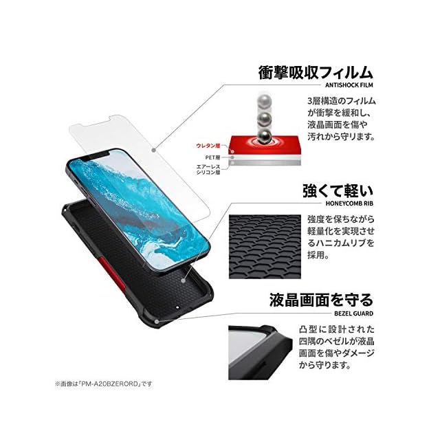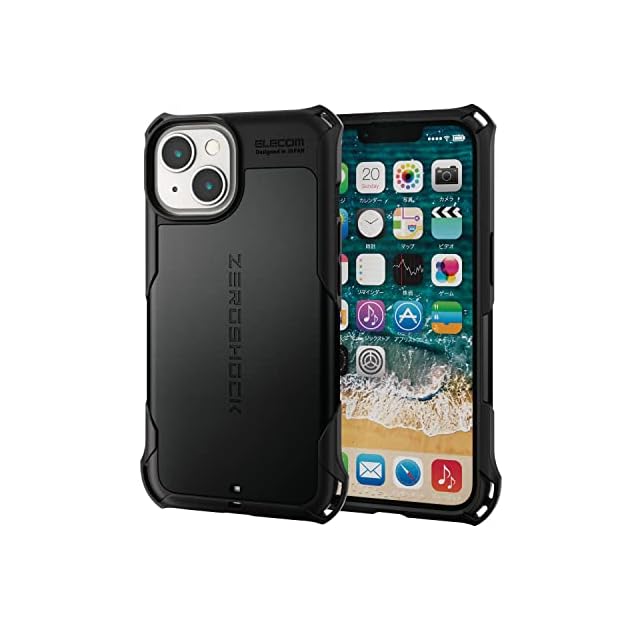 商品名:エレコム iPhone 14 / 13 ケース カバー 耐衝撃 衝撃吸収 ZEROSHOCK [四つ角ダンパー/ハニカム構造/ダブルレイヤー構造] 【衝撃吸収フィルム付き】 ストラップホール付き ブラック PM-A22AZEROBK