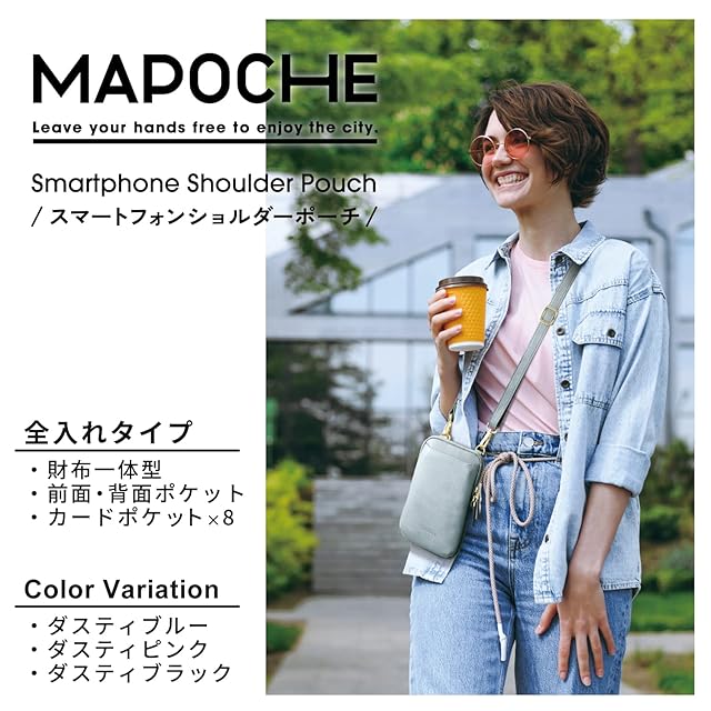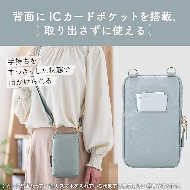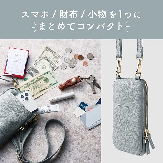 エレコム スマホショルダー スマホポーチ MAPOCHE Series 裏起毛 お財布一体型タイプ [お札/小銭/カード入れ付き] [iPhone SE3 14 14Pro 14ProMax 14Plus など、6.7インチまでのスマートフォン対応] ダスティブルー P-MAP01BU | LIS MART