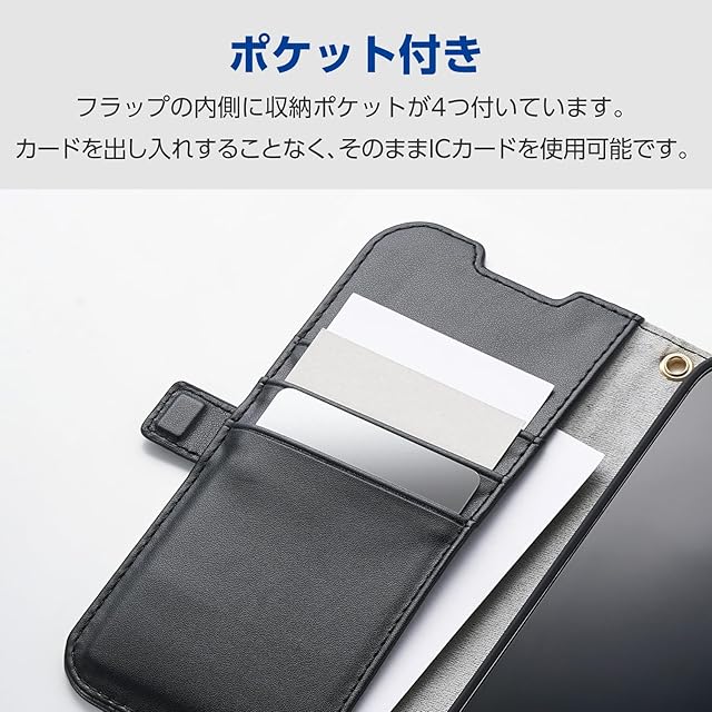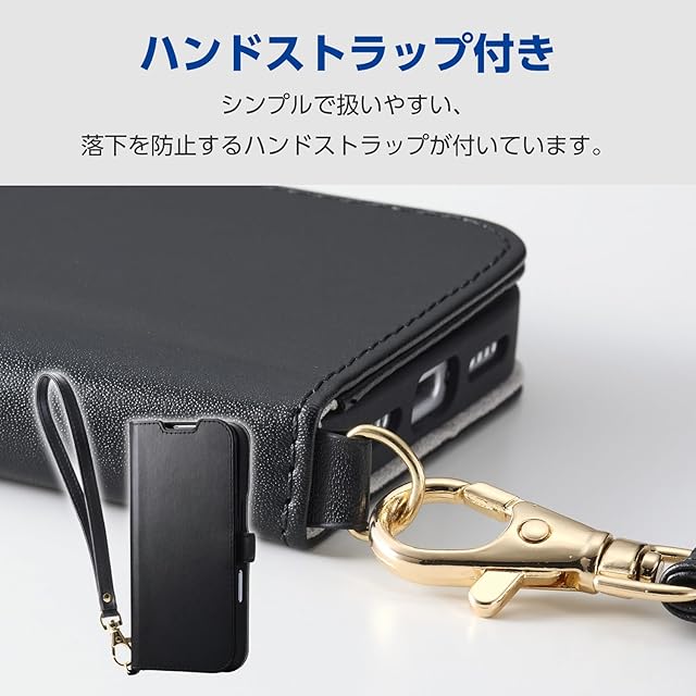 商品名:エレコム iPhone 17 ケース カバー 手帳型 ソフトレザー TPU 耐衝撃 衝撃吸収 カード収納 4つのポケット スタンド機能 ハンドストラップ付き 4つ角エアークッション ブラック PM-A25APLFY4BK