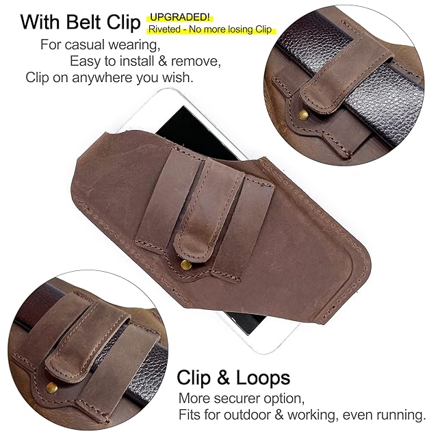 TobbinGear レザー携帯電話ホルスター ベルトクリップ付き、レザーベルトフォンポーチ、ベルト上のユニバーサルレザーフォンケース、iPhone用携帯電話ホルダー、携帯電話シースラージ ダークブラウン | LIS MART