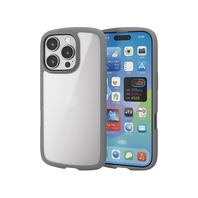 エレコム iPhone 16 Pro ケース クリア 耐衝撃 衝撃吸収 フレームカラー ハイブリッド 薄型 ワイヤレス充電対応 軽量 ストラップホール付き 全周エアークッション ストラップホルダーシート付 グレー PM-A24CTSLFCGY | LIS MART
