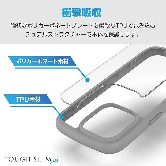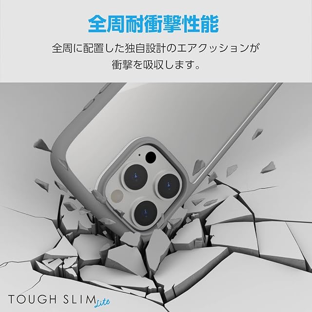 全周に配置した独自設計のエアークッションが衝撃を吸収し、背面には高硬度のポリカーボネートを採用した、TOUGH SLIM LITEケースです。