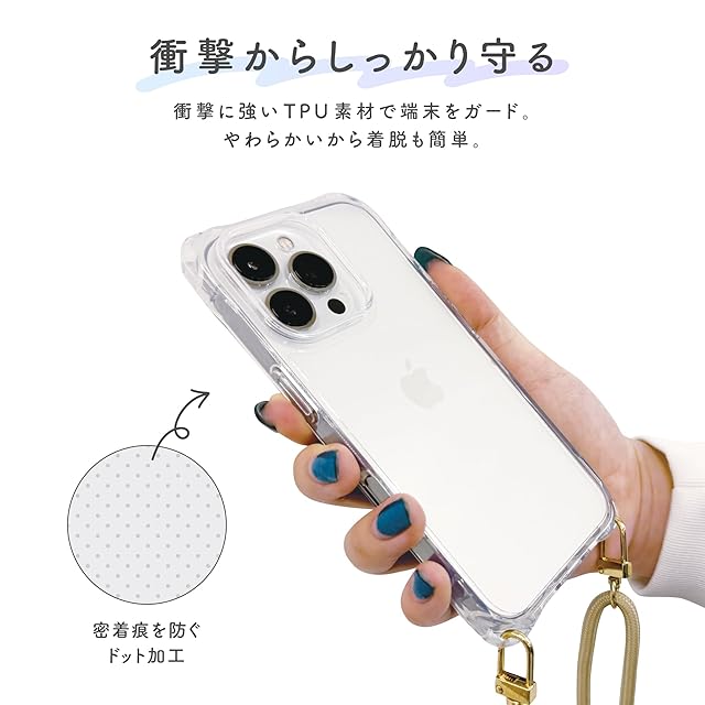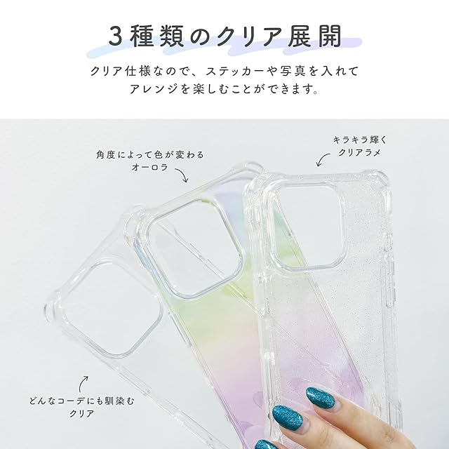iPhone16 / iPhone16Pro 対応 クリアケース 四角 ストラップホール付き 耐衝撃 背面密着後 防止 ショルダー/ハンドストラップ付け替え 東大阪 モノづくりメーカー 株式会社サンクレスト (クリアラメ, iPhone16) | LIS MART