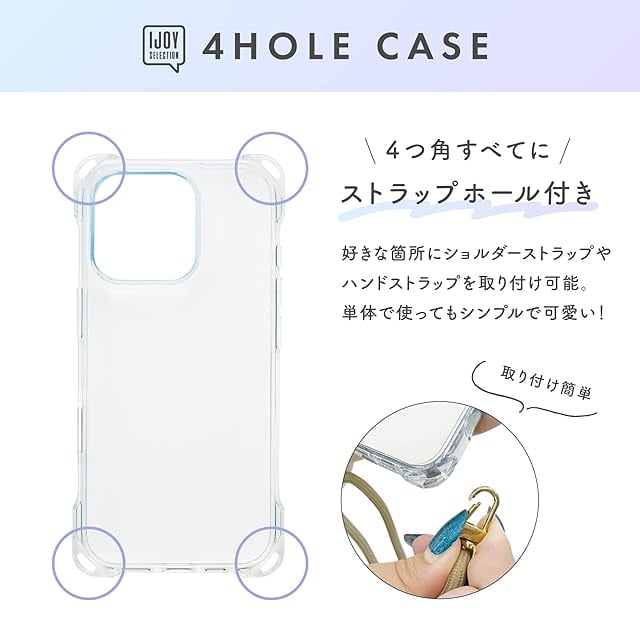 iPhone16 / iPhone16Pro 対応 クリアケース 四角 ストラップホール付き 耐衝撃 背面密着後 防止 ショルダー/ハンドストラップ付け替え 東大阪 モノづくりメーカー 株式会社サンクレスト (オーロラ, iPhone16 Pro) | LIS MART