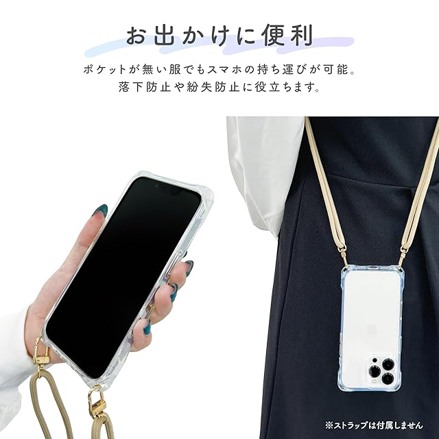 iPhone16 / iPhone16Pro 対応 クリアケース 四角 ストラップホール付き 耐衝撃 背面密着後 防止 ショルダー/ハンドストラップ付け替え 東大阪 モノづくりメーカー 株式会社サンクレスト (クリア, iPhone16) | LIS MART
