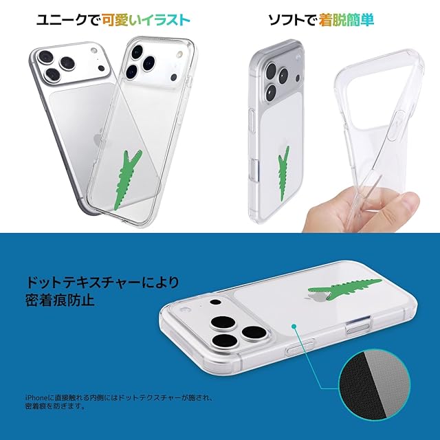 商品名:AKAN iPhone 17 用 ソフトクリアケース [ Appleロゴが映える 透明 密着痕防止 TPU 変色しにくいUVプリント 防塵 ワイヤレス充電対応 ] ゆるかわ キャラクター モグモグ ワニ AK27756i17 【国内正規品】