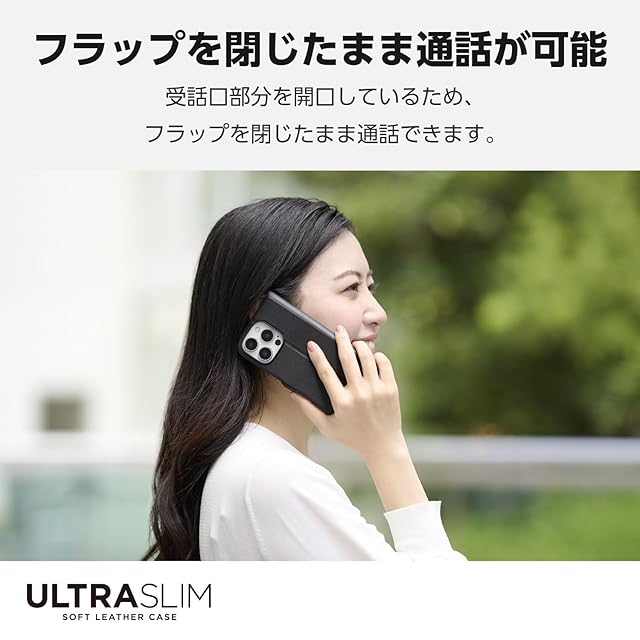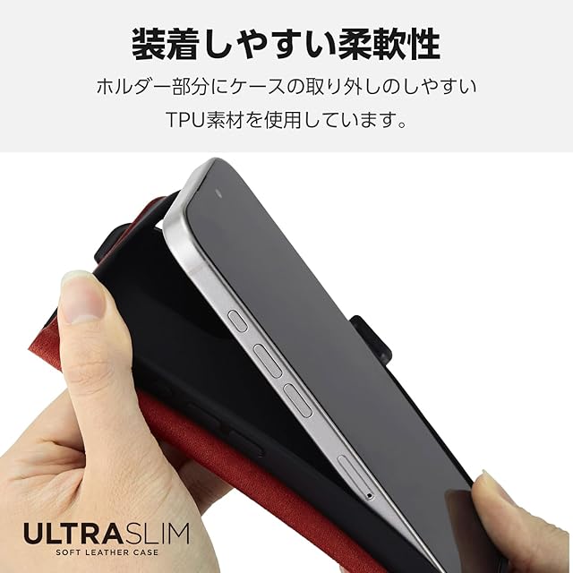 端末の薄さや軽さを損ねない、薄型・超軽量なウルトラスリムタイプのソフトレザーケース(手帳型)です。