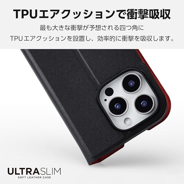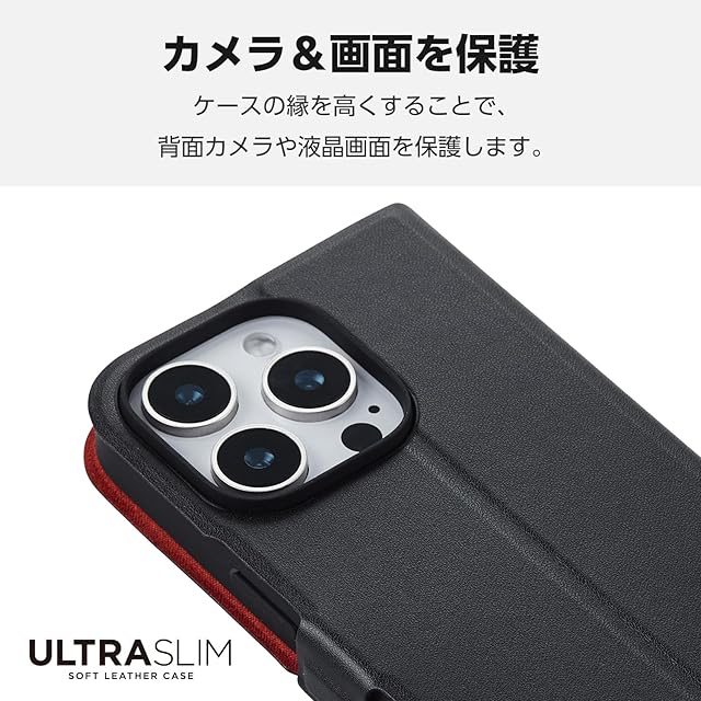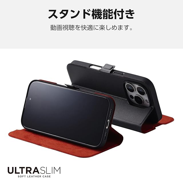 エレコム iPhone 16 Pro ケース カバー 手帳型 薄型 軽量 ソフトレザー 磁石付き ワイヤレス充電対応 カードポケット×1 スタンド機能 4つ角エアークッション UltraSlim ブラック PM-A24CPLFUBK | LIS MART