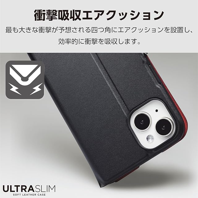 商品名:エレコム iPhone15 Plus ケース 手帳型 UltraSlim 薄型 スリム マグネット開閉 カードポケット スタンド機能 [驚くほど薄くて軽い] ブラック PM-A23BPLFUBK