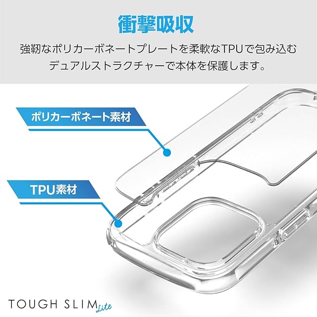 エレコム iPhone 16 Pro ケース クリア 耐衝撃 衝撃吸収 ハイブリッド 薄型 軽量 ワイヤレス充電対応 ストラップホール付き 全周エアークッション ストラップホルダーシート付 TOUGH SLIM LITE クリア PM-A24CTSLACR | LIS MART
