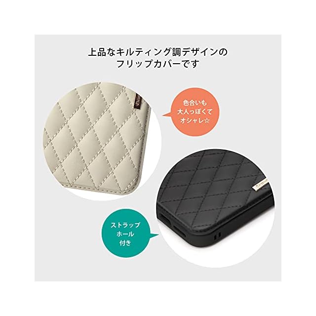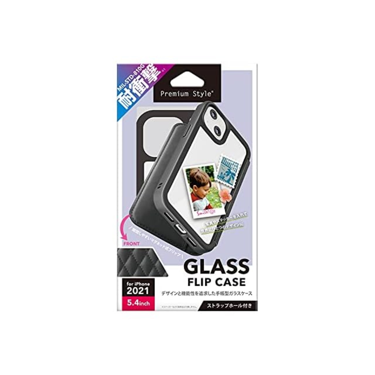 商品名:Premium Style iPhone 13 mini用 ガラスフリップケース キルティング調ブラック PG-21JGF03BK