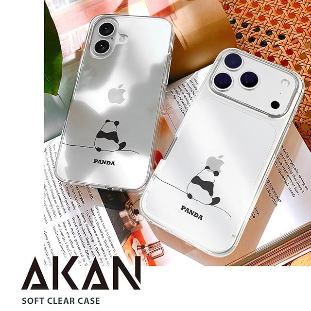 AKAN iPhone 17 用 ソフトクリアケース [ 透明 密着痕防止 TPU 変色しにくいUVプリント 防塵 ワイヤレス充電対応 ] ゆるかわ 癒し系 キャラクター パンダ AK27736i17 【国内正規品】