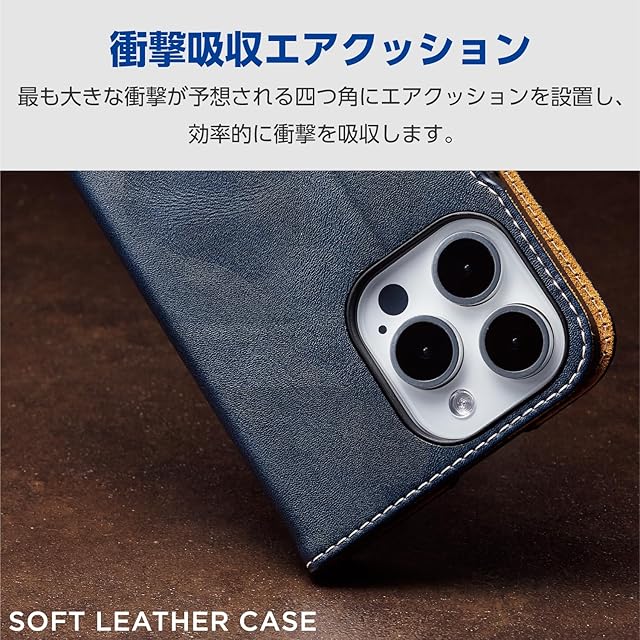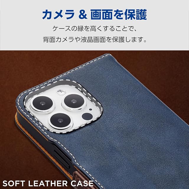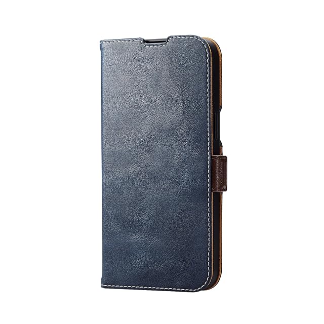 商品名:エレコム iPhone15 Pro Max ケース 手帳型 レザー 革 マグネット開閉 カードポケット×2 スタンド機能 ストラップホール付き ネイビー PM-A23DPLFYNV