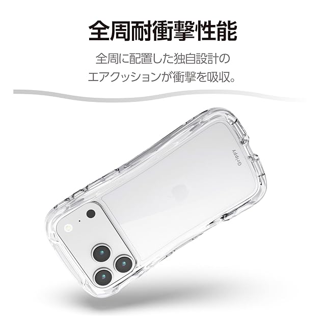 商品名:エレコム iPhone 17 Pro Max ケース カバー クリア 耐衝撃 衝撃吸収 ハイブリッド TPU Grippy 手に馴染む グリップ感 ストラップホール付き カメラ保護 メタルステッカー付属 ストラップシート付き オールクリア PM-A25DGRPACR