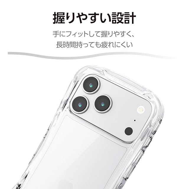 エレコム iPhone 17 Pro Max ケース カバー クリア 耐衝撃 衝撃吸収 ハイブリッド TPU Grippy 手に馴染む グリップ感 ストラップホール付き カメラ保護 メタルステッカー付属 ストラップシート付き オールクリア PM-A25DGRPACR | LIS MART