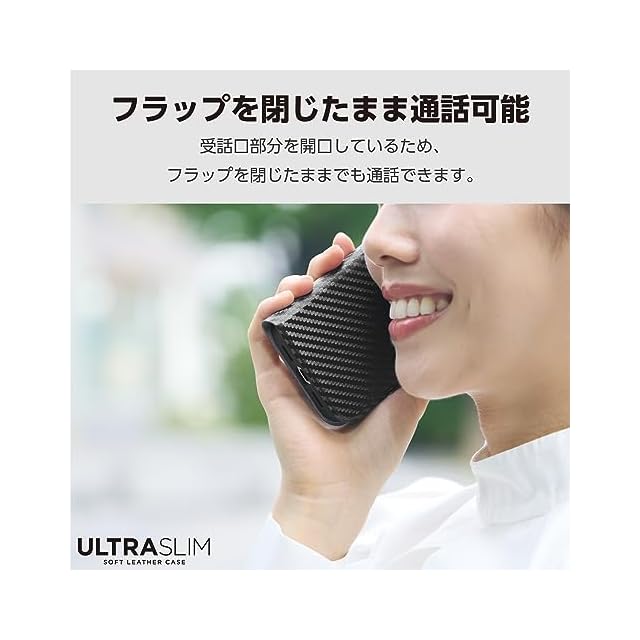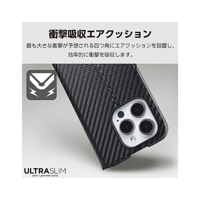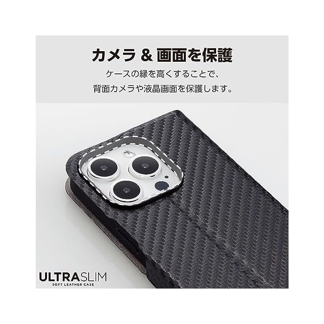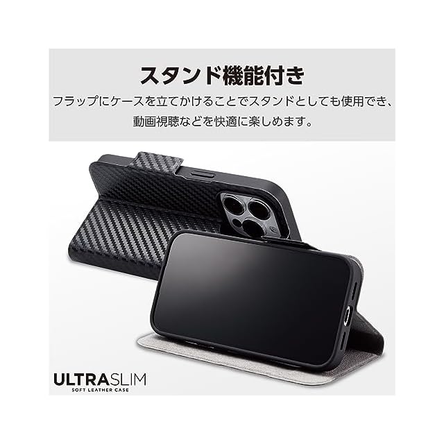 商品名:エレコム iPhone15 Pro ケース 手帳型 UltraSlim 薄型 スリム マグネット開閉 カードポケット スタンド機能 [驚くほど薄くて軽い] カーボンブラック PM-A23CPLFUCB