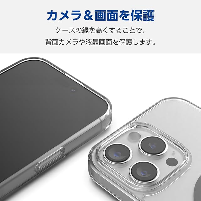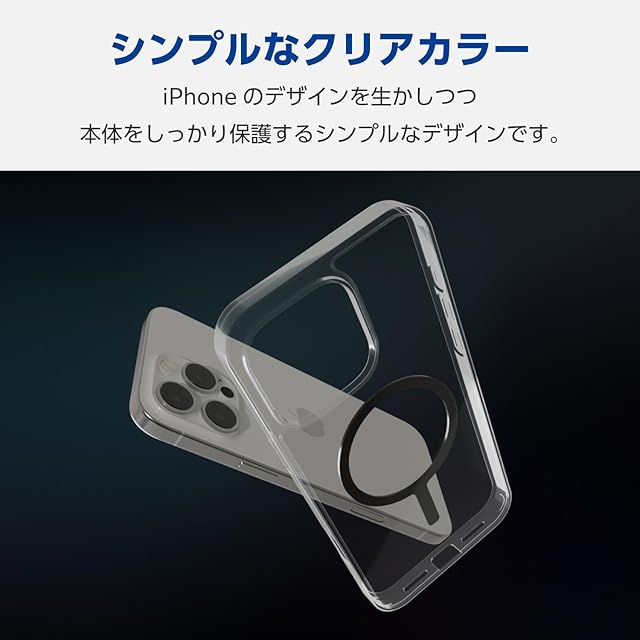 エレコム iPhone 16 Pro Max ケース クリア 背面硬度5H マグネット MAGKEEP ワイヤレス充電対応 4つ角エアークッション ブラック PM-A24DMAG02BK | LIS MART