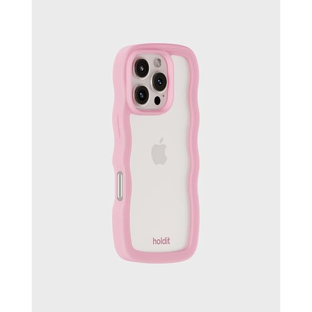 Holdit 耐衝撃 スマホケース (iPhone 16Pro / パステルピンク/クリアタイプ) 日本初上陸モデル スマホ ケース カバー なみなみ ウェーブ (衝撃吸収/TPU/ワイヤレス充電可能) iphoneケース | LIS MART