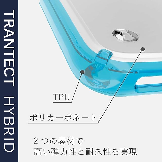 軽くて丈夫なポリカーボネートと弾性のあるTPUの2種類の素材を使用しています。