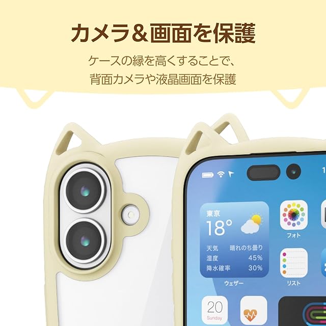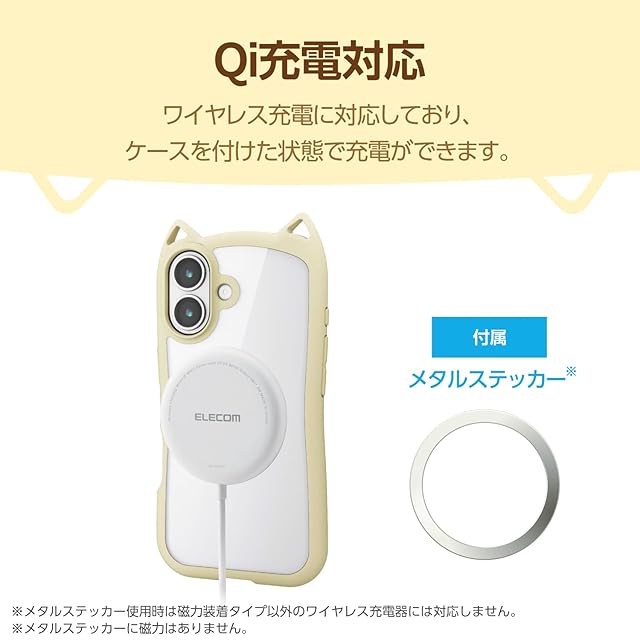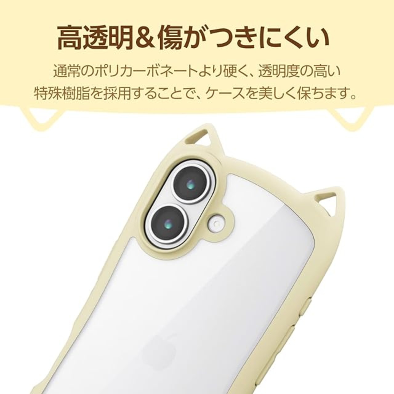 商品名:エレコム iPhone 17 ケース カバー 猫耳型 クリア 耐衝撃 衝撃吸収 ハイブリッド TPU ストラップホール付き 硬度5H カメラ保護 メタルステッカー付属 ストラップシート付き キナコ PM-A25AFCCATBE