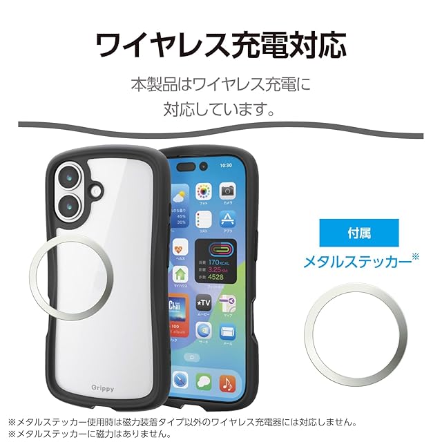 商品名:エレコム iPhone 17 ケース カバー クリア 耐衝撃 衝撃吸収 ハイブリッド TPU Grippy 手に馴染む グリップ感 ストラップホール付き カメラ保護 メタルステッカー付属 ストラップシート付き ブラック PM-A25AGRPFCBK