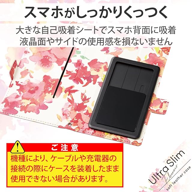 商品名:エレコム スマホケース 汎用 マルチケース Lサイズ レザー 手帳型 マグネット開閉 スライド式 スタンド機能 薄型 軽量 花柄 ストラップホール付 ディープピンク 【iPhone 16 / 16e シリーズ 対応検証済】 P-05PLFUSJPND