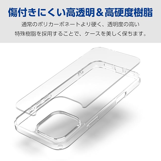 エレコム iPhone 16 Pro Max ケース クリア 背面硬度5H ハイブリッド ポリカーボネート ストラップホール付き ワイヤレス充電対応 4つ角エアークッション クリア PM-A24DHVCKCR | LIS MART