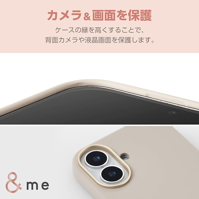 エレコム iPhone 16 ケース シリコン 三層構造 ハイブリッド ほこりが付きにくい ストラップホルダーシート付 &me グレージュ ワイヤレス充電対応 PM-A24ASCSHGB | LIS MART