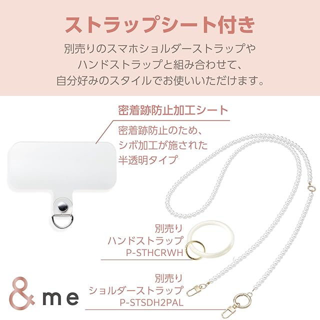 3層構造で端末をしっかりと守る、&meシリーズのハイブリッドシリコンケースです。ショルダーストラップやハンドストラップが取り付けられる、ストラップホールシート(1つ穴・半透明タイプ)が付属しています。
