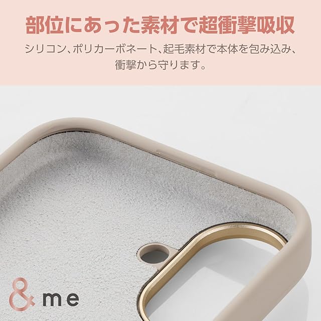 商品名:エレコム iPhone 16 ケース シリコン 三層構造 ハイブリッド ほこりが付きにくい ストラップホルダーシート付 &me グレージュ ワイヤレス充電対応 PM-A24ASCSHGB