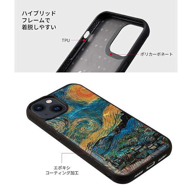 Ikins ikins iPhone 15 Pro Max ケース 天然貝ケース [ パール 光沢 表面コーティング加工 TPUとポリカーボネートのハイブリッド 着脱しやすい ストラップホール付き ワイヤレス充電 ] 名画シリーズ 名作絵画 アップル アイフォン 背面カバー フィンセント・ファン・ゴッホ 星月夜 I25496i15PM 【国内正規品】 | LIS MART