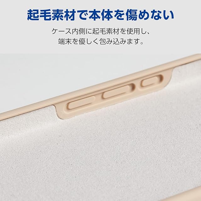 ケース内側には起毛素材を使用し、端末を優しく包み込みます。