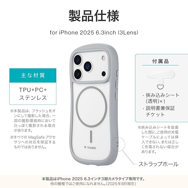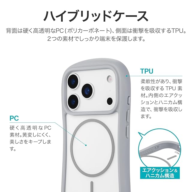 商品名:LEPLUS iPhone 17 Pro対応 耐傷・耐衝撃ハイブリッドケース 「ViAMO mag」 ライトグレー LN-IP25VMMLGY