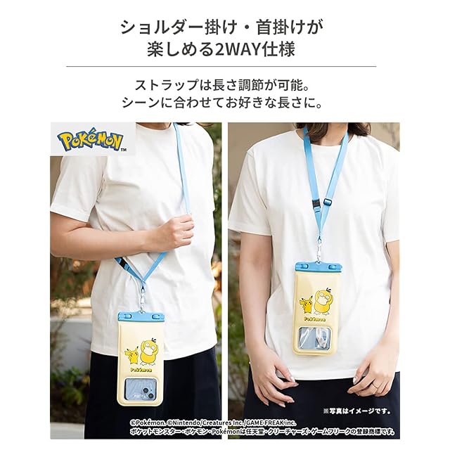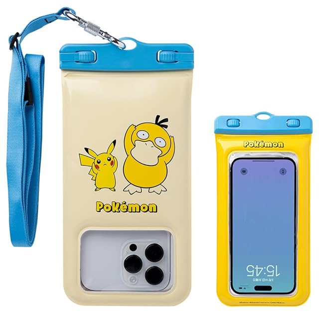 DIVAID ポケットモンスター/ポケモン ワイドサイズ 防水ケース ショルダーストラップ(ピカチュウ&コダック)【 iPhone Android 各種スマートフォン対応 水に浮く フローティング 防水 防塵 IP68】 | LIS MART