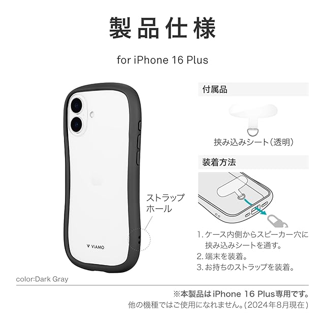 商品名:LEPLUS ルプラス iPhone 16 Plus 耐傷・耐衝撃ハイブリッドケース 「ViAMO freely」 ダークグレー LN-IA24VMFGY