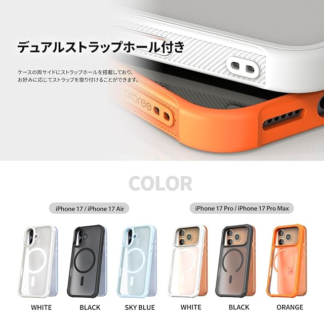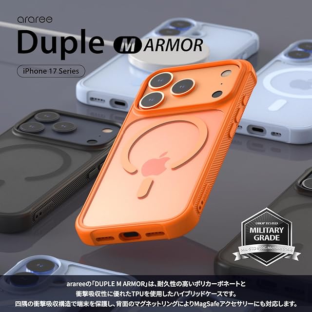 araree iPhone 17 用 ケース ハイブリッド耐衝撃 MagSafe対応 [ MIL規格 エアークッション 滑り止めベゼル 外れない埋め込み磁石 ストラップホール 着脱簡単 精密設計 ] DUPLE M ARMOR ブラック AR27973i17 【国内正規品】 | LIS MART