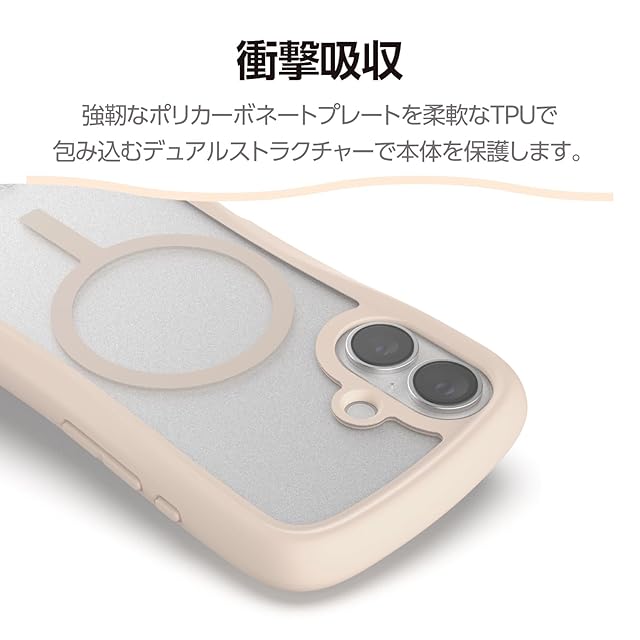 商品名:エレコム iPhone 17 ケース カバー クリア 耐衝撃 衝撃吸収 ハイブリッド TPU Grippy 手に馴染む グリップ感 ストラップホール付き カメラ保護 ワイヤレス充電対応 ストラップシート付き ベージュ PM-A25AGRPFMBE