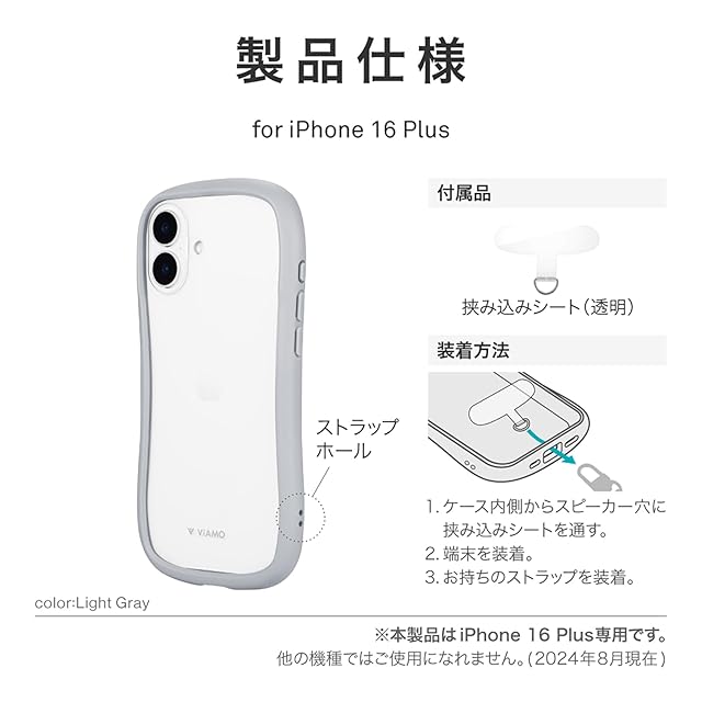 商品名:LEPLUS ルプラス iPhone 16 Plus 耐傷・耐衝撃ハイブリッドケース 「ViAMO freely」 ライトグレー LN-IA24VMFLGY
