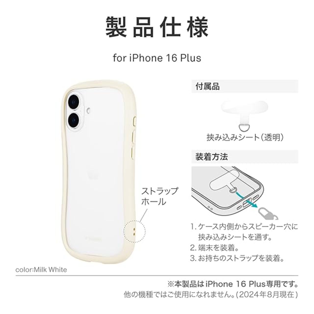 商品名:LEPLUS ルプラス iPhone 16 Plus 耐傷・耐衝撃ハイブリッドケース 「ViAMO freely」 ミルクホワイト LN-IA24VMFWH