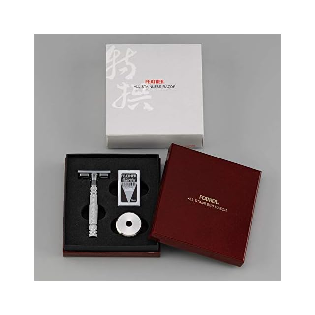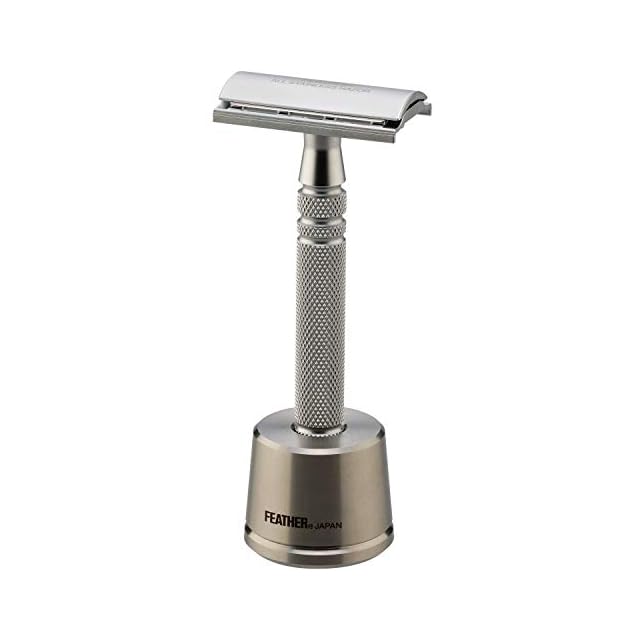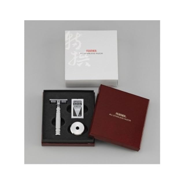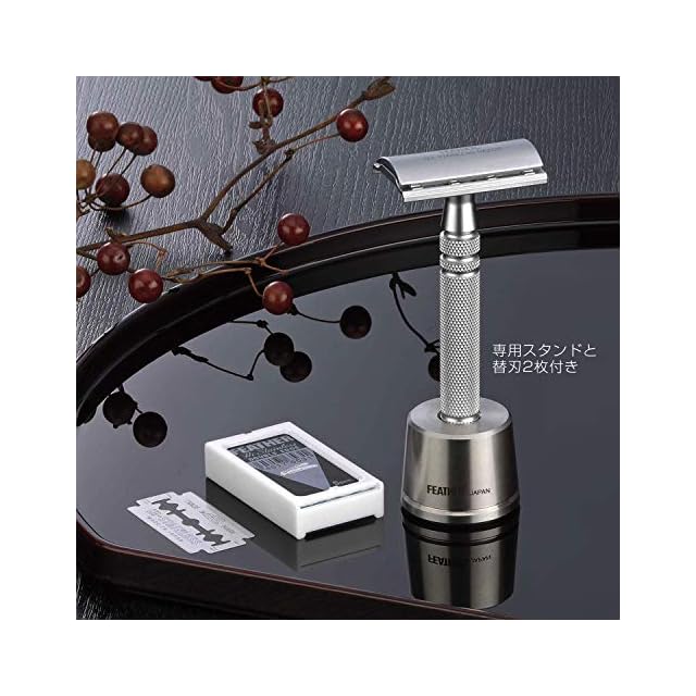 商品名:フェザー安全剃刀 FEATHER(フェザー) 特撰 両刃オールステンレスレザーN 日本製 専用スタンド 替刃2枚付 国産 高級カミソリ 髭剃り メンズ 単品 1個 (x 1)